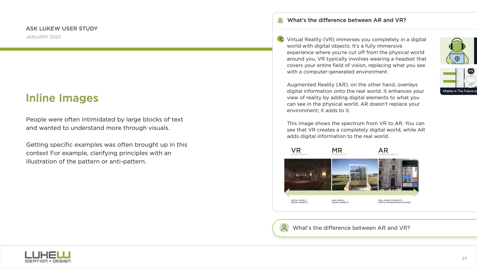 And the third is what I call the walls of text problem. Because so much of this is built on large language models, people are often left staring at big blocks of text they have to parse and interpret. We found that bringing back multimedia, like responding with images alongside text, or using diagrams and interactive elements, helped a lot.
